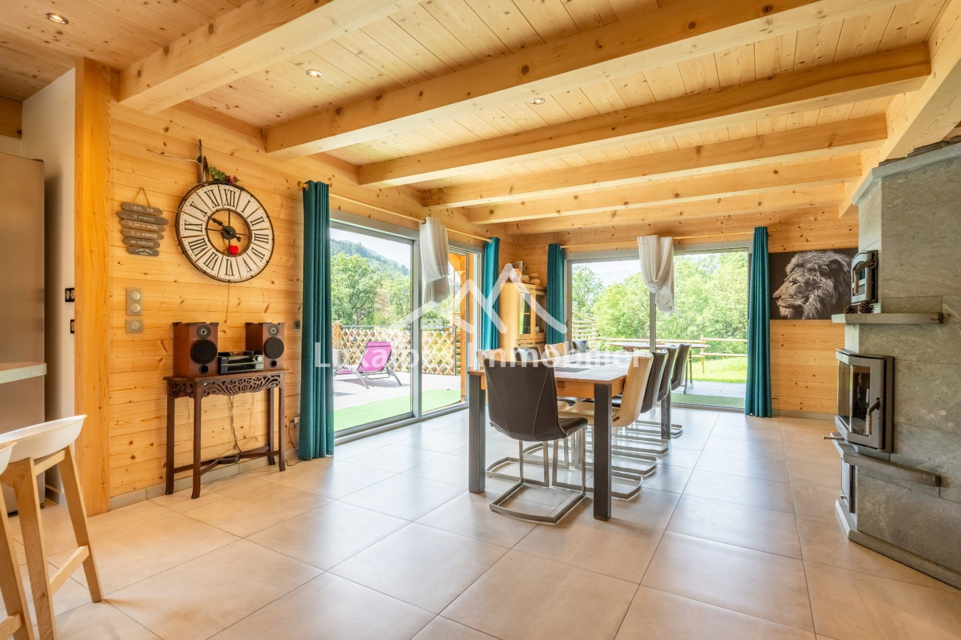 SOUS OFFRE – Magnifique chalet Lambersens en madrier, d’une surface utile d’environ 322 m² pour une surface aménagée d’environ 175 m² idéalement situé entre les stations de ski de La Clusaz et du Grand-Bornand et Annecy. Sur deux niveaux, ce chalet aux prestations de qualités se compose, au rez-de-chaussée d’une entrée avec grand placard de rangement, une chambre avec salle d’eau, WC séparé, une cuisine aménagée et équipée ouverte, coin salon avec poêle de masse et une salle à manger avec accès direct sur la somptueuse terrasse de 66 m² exposée Sud-Ouest offrant une vue sur la Tournette et les montagnes environnantes. Au 1er étage, une suite parentale avec salle de bains et WC et une grande mezzanine ouverte permettant un aménagement à votre convenance (chambre, bureau, coin détente ou salle de sport).Au sous-sol, un grand garage de 110 m² avec porte électrique de 3,80 m permettant de garer Van et autres véhicules, une cave taillée dans la roche et une remise complètent ce bien. Le tout est édifié sur un terrain d’environ 900 m².Ce chalet est idéal pour une famille, en résidence principale ou secondaire (possibilité revenus locatifs), en quête d’espace et de quiétude.DPE : D (212) / GES : B (6).Pour plus de transparence vis à vis de votre budget, nos prix sont affichés honoraires d’agence inclus (4,17% TTC à la charge de l’acquéreur soit 1 008 000 euros net vendeur).