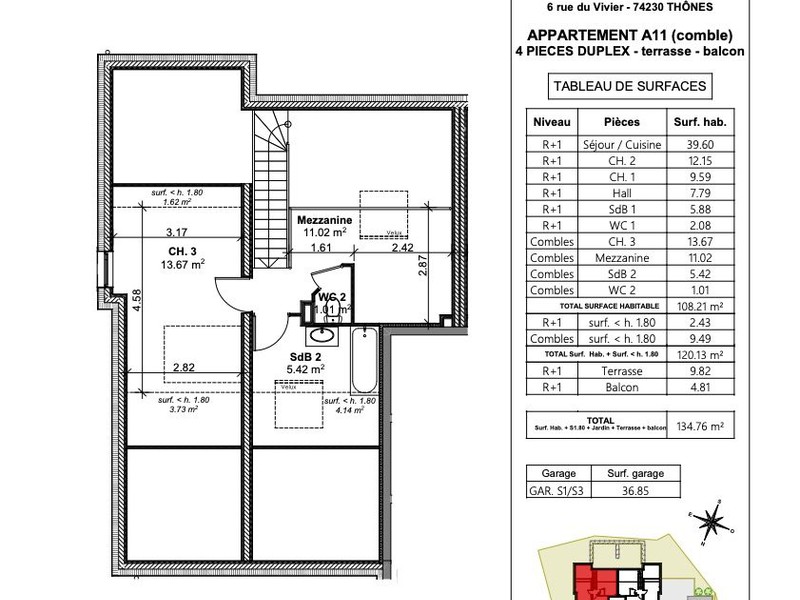 Situé dans un quartier privilégié de Thônes, dans le nouveau programme LES CHALETS D'ARMAND, à 20km d'Annecy et 15 min des stations des Aravis et proche de toutes commodités à pied, découvrez cet appartement T4 Duplex situé au dernier étage d'une surface habitable de 119.04 m² dont 108.21 m² Loi Carrez, dans une mini-résidence avec ascenseur sans vis à vis.