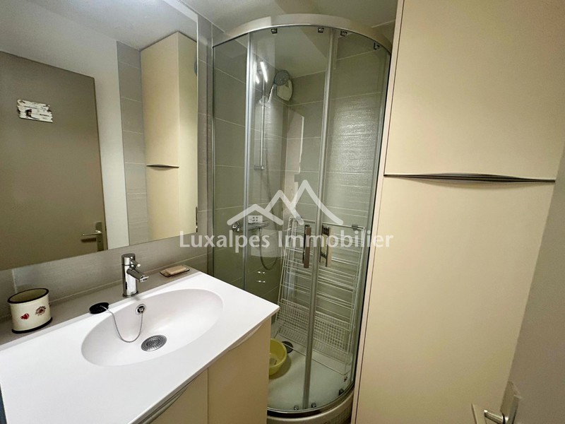 Cet appartement d’environ 25 m² Loi Carrez se compose d'une entrée avec rangements, d'un coin nuit séparé, ainsi que d’un second espace nuit astucieusement intégré dans le couloir. La pièce de vie, baignée de lumière, comprend un séjour convivial avec une cuisine ouverte entièrement aménagée et équipée. Ce salon s'ouvre sur la terrasse, offrant un panorama dégagé sur les sommets environnants.