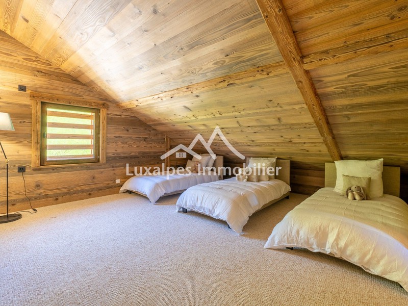 Le chalet dispose également d’un garage, d’une cave et d’un ski room fonctionnel. La construction récente permet de bénéficier de frais de notaire réduits.