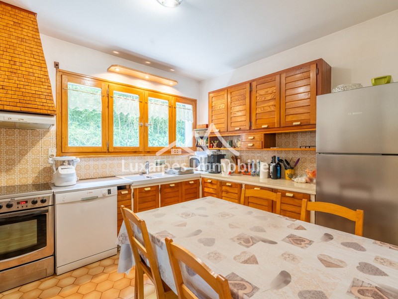 Elle comprend un séjour cathédrale baigné de lumière, une cuisine indépendante aménagée et équipée, un salon avec cheminée, trois chambres avec rangements, une salle de bains et une salle d'eau.
