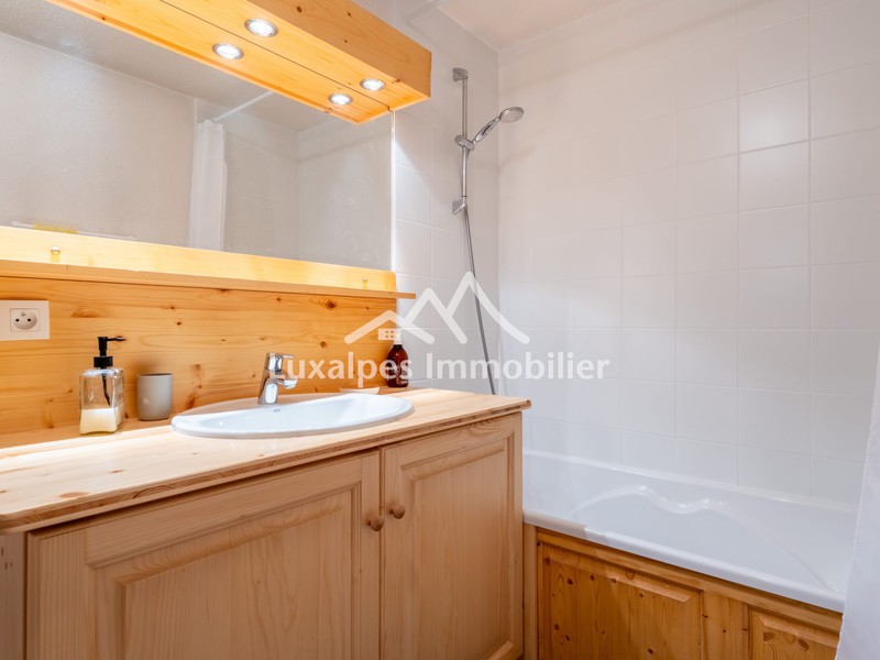 Le tout s’ouvre sur un balcon orienté Sud-Est, offrant une magnifique vue dégagée sur les sommets environnants et le domaine skiable.