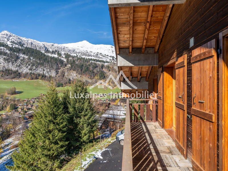 Un grand balcon exposé à l’Ouest permet de profiter d’une superbe vue sur les montagnes.